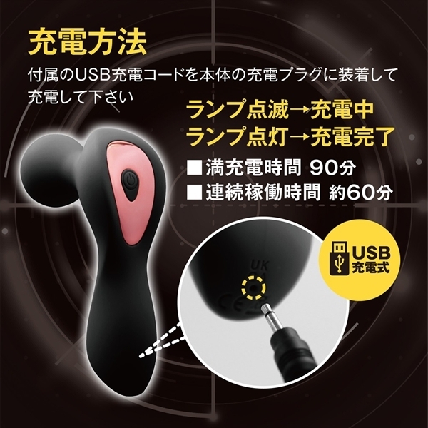 サイズ/仕様:パッケージ:16.4×8.8×4.8cm 本体サイズ:11.5×6.6×3.7cm 【振動機能 USB充電式】 USB充電コード付属