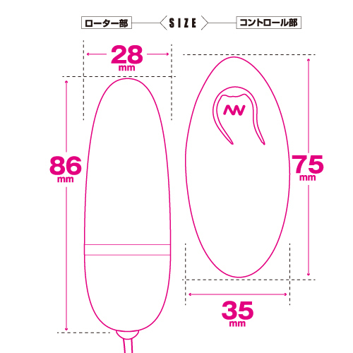 サイズ/仕様:パッケージ:16.5×9.0×5.0cm 本体:ローター8.6×2.8cm・コントローラー全長7.5cm 重量:182g 電池:本体(単四電池×1本使用)、コントローラー(単四電池×1本使用)
