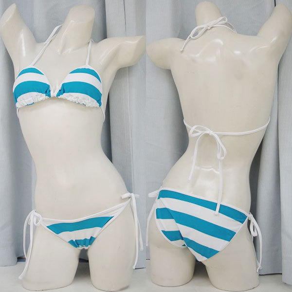 サイズ/仕様:フリーサイズ:Bアンダー〜80cm・Bトップ〜100cm・W(ショーツ)60〜76cm 丈:肩紐各50cm(ホルターネック)・ショーツ紐38〜40cm セット内容:ビキニブラ(ブラパット付、パットケースあり)・紐ビキニショーツ