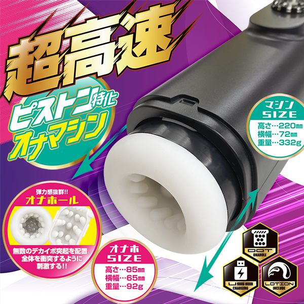 サイズ/仕様:パッケージ:26.2×10.2×10.2cm 本体:22.0×72cm・ホール8.5×6.5cm 材質:ABS、TPE セット内容:本体、充電ケーブル、ミニローション 重量:424g USB充電式