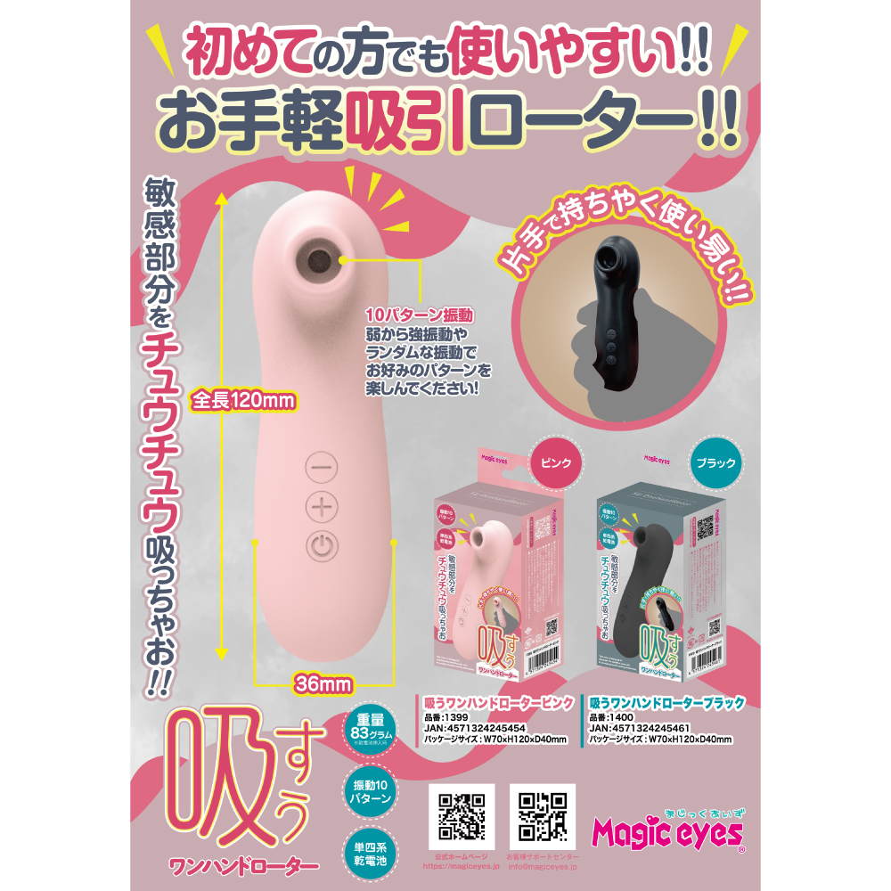 敏感な部分を心地よく吸引する電池式のワンハンドローターです♪10種類の振動パターンがあり、簡単に操作できる3つのボタンで、初めての方にも使いやすい設計!電池を入れても83gと超軽量なので、長時間の使用でも疲れにくく、快適に使えます♪コンパクトで持ち運びにも便利なので、どこでも手軽に楽しめるアイテムです!シンプルなブラックカラーで、洗練されたデザインが魅力です♪