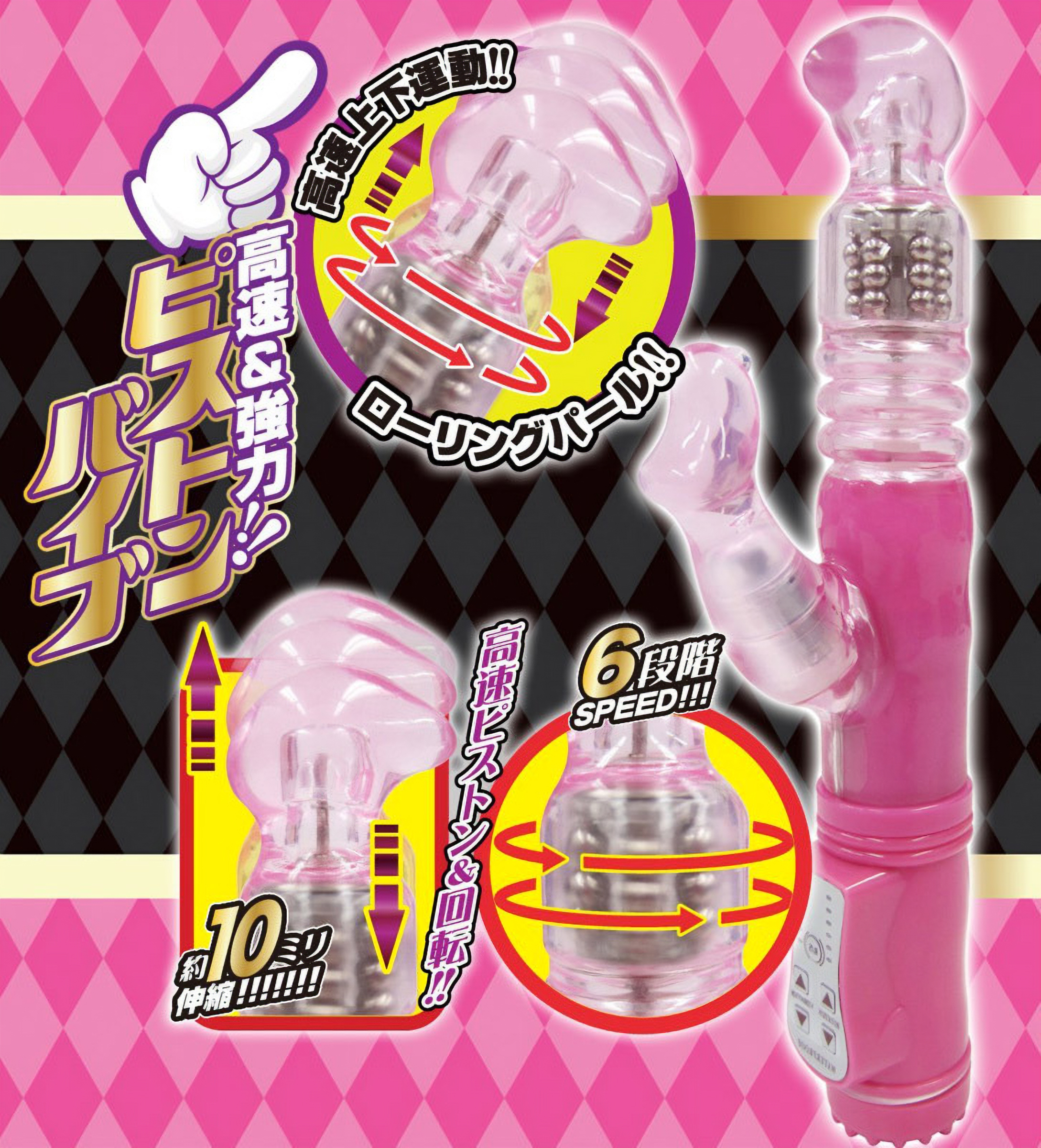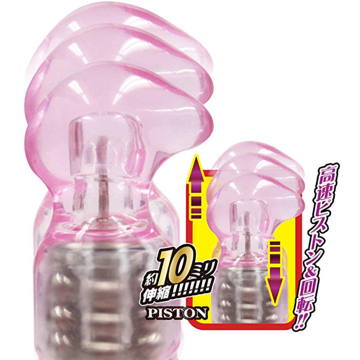 高速ピストン&回転パールのW快感でGスポットを狙い撃ち!悶絶刺激でイカせる潮吹き用ピストンバイブ。●クリアピンクの蛇腹ボディ●快感をかき出すカギ型先端ヘッド●上下に10mm伸縮するピストン機能搭載●内蔵パールは左右反転機能付き●ピストン&回転は各6段階の速度調整可●クリバイブの振動は計12種類。超高速ピストン+回転機能で大量潮吹きを体験!ナカへの刺激に加え、大きめのクリバイブが外からも刺激する悶絶級のバイブレーターです。