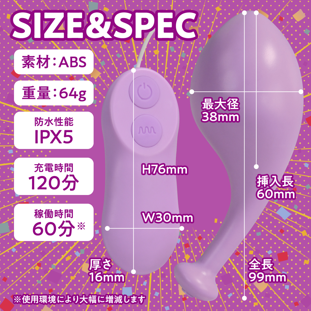 超ハイパワーモーターと高性能バッテリーを組み合わせた高刺激設計のローターです♪デンマのようにズンズン響くパワフルな振動で、今までにない刺激を体感できます!5段階の強弱調整と7種類のリズムパターンを搭載し、合計12パターンの振動が楽しめます♪振動部はIPX5相当の防水仕様なので、使用後も丸洗いできて衛生的に長くご使用いただけます!約120分の充電で、最大60分間の連続使用が可能です♪(使用環境により変動します!)持ちやすさを考えたグリップ付き設計で、強力な振動でも安定した操作が可能です♪サイズ感・実用性・素材にもこだわり抜いた、頼れる高性能ローターです!