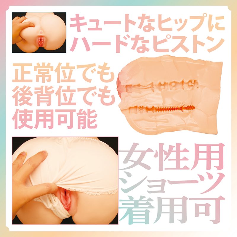タマトイズAI新技術リアルソフト製法。手にした瞬間その柔らかさに感動!細部までこだわった至高の触感は本物のお尻の柔らかさを完全再現。安定感抜群の据置型ホール、2穴使用可能、触り心地は息を呑むほどのリアリティで、キュートなヒップにハードなピストン!正常位でも後背位でも使用可能。ムッチリ肉感あふれる触り心地。女性用ショーツ着用可